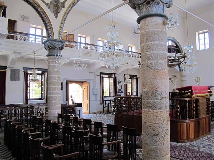 A görögországi zsinagógák felépítése hasonlít az ortodox zsinagógákéhoz. A nők karzaton ülnek. Sok szfárádi közösségekhez hasonlóan függőleges helyzetben, fatokban őrzik a Tórát. A tóraolvasó asztal, a bimá a zsinagóga hátsó traktusában van.