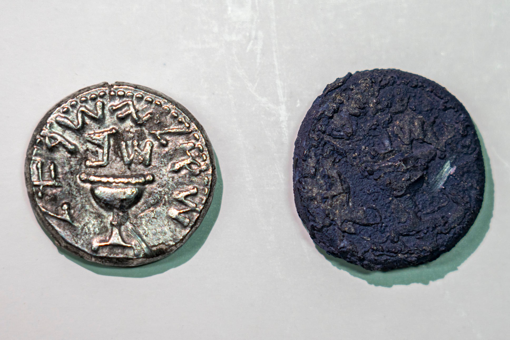 A pénzérmét abban a törmelékben találták, mely a Zarándokok Útjának feltárása nyomán került az átszitálási projekthez. Ezt a feltárást az Izraeli Régészeti Hatóság szakemberei végzik és már több értékes leletről is beszámoltunk oldalunkon, melyek innen kerültek elő. Az érme egyik oldalán egy kehely látható „izraeli sékel” felirattal (a ma Izraelben használatos pénz egy ókori súlymértékről nyerte a nevét, innen a névazonosság). A kehely mellett két héber betű, egy sin – ש – és egy bét – ב – szerepel, utalva arra, hogy ez volt a sáná bét, vagyis a felkelés második éve (i. sz. 67-68).