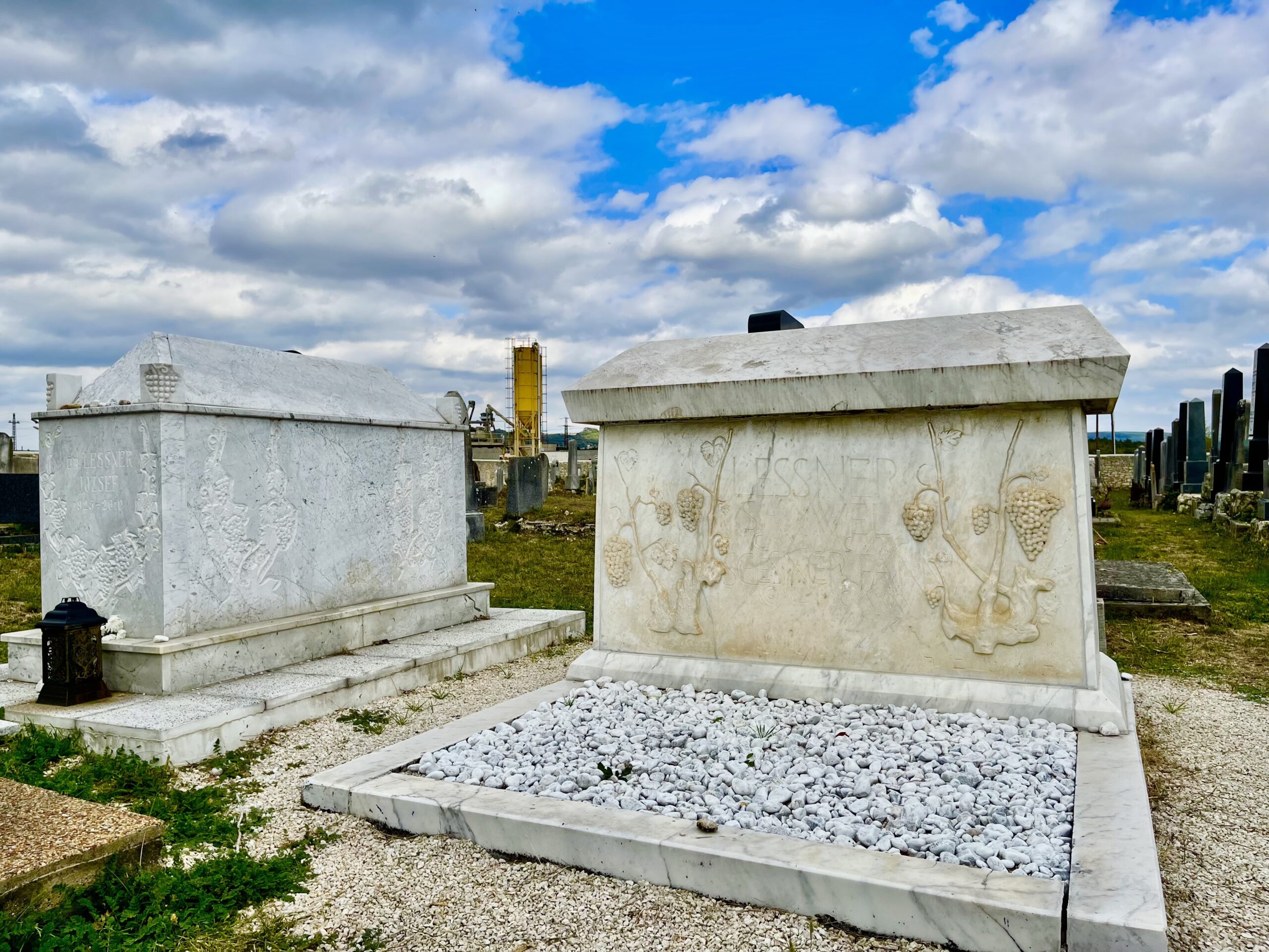 A temető talán legszebb sírköve is a családhoz köthető. L. Manó egyik fia, Lessner Sámuel (1846–1938) és felesége, született Schlesinger Fáni (1851–1925) fehérmárvány szarkofágja, melyet szőlőindákat formázó reliefek ölelnek körbe. A kiragyogó síremléket Ferenczy Béni (1890–1967) szobrász, grafikus, a család jó barátja készítette. L. Sámuel egyébként a harmadik generáció ásza volt, aki tömegessé tette a Balaton-felvidéki borok exportját, – sikerének egyik mutatója, hogy Tapolca virilistái között a veszprémi püspök után a második legtöbb adót fizető volt.