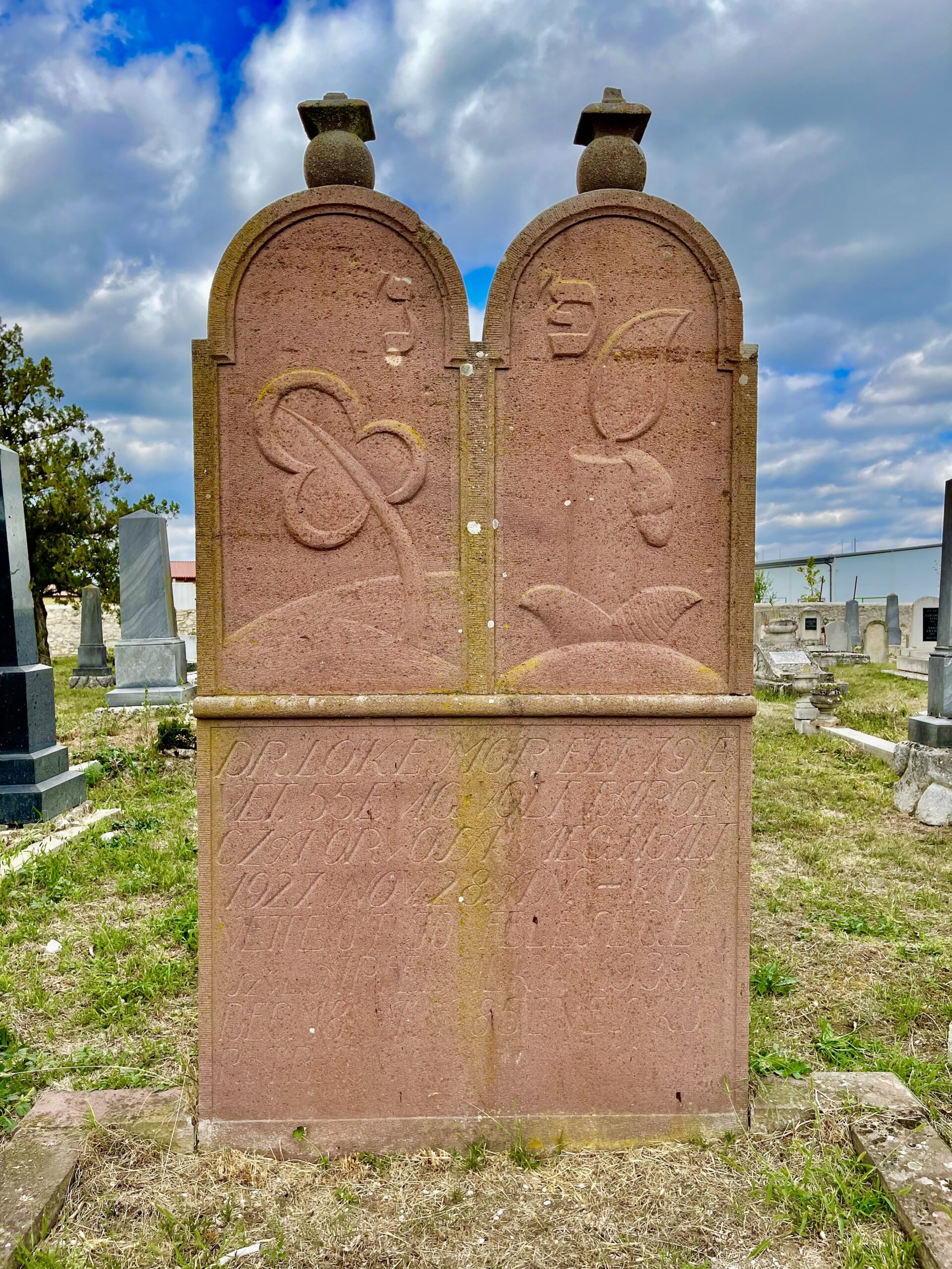 Az egyik legfeltűnőbb síremlék dr. Lőke Mór (szül.: Lőwensohn, 1848–1927) és felesége, született Apfel Ilka (1854–1939) közös macévája, melyet egy Balaton-felvidéki vöröskőtömből faragtak ki. Lőke doktort legtöbben a szegények orvosának hívták, akivel nekrológja szerint nem egyszer fordult elő, hogy „észrevétlenül becsúsztatott komoly összegeket a jajgyűrte párnák alá, ahol a betegség és a szegénység réme versengtek egymással”. A gyermekek egyik fő pártfogolója volt, aki bevezette az ingyenes iskolaorvosi szolgálatot. A doktor felesége is aktív társadalmi munkát vállalt, az izraelita nőegyleti munkája mellett a Tapolcai Kórházegyesület elnökének is őt kérték fel. Amikor – a fantasztikusan alaposan megszerkesztett –, online is elérhető Tapolcai Életrajzi Lexikon mellett keresgéltem még Lőke doktorról információkat, akkor Az Érdkes Ujság egy 1917-es számában megtaláltam Lőke 50. érettségi találkozójának a fényképét, melyet abból az extra apropóból közöltek, hogy a Ciszterci Rend székesfehérvári főgimnázium ezen osztályába járt Wekerle Sándor (1848–1921) miniszterelnök is.