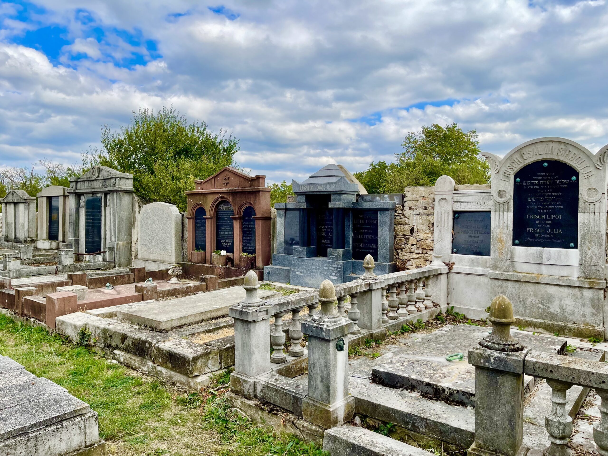 A héberbetűs sírkertet középen egy szélesebb út szel ketté, s jobbról-balról szabályos sorokban strázsálnak a kövek. A legutóbbi ittjártamkor a terület alig első harmada volt bejárható, ma viszont az egész megtisztítva, teljes alakjában mutatja magát. A bejárattól bal oldalt a legnagyobb síremlék, tetején az ország legvéresebb évszámával, 1944.