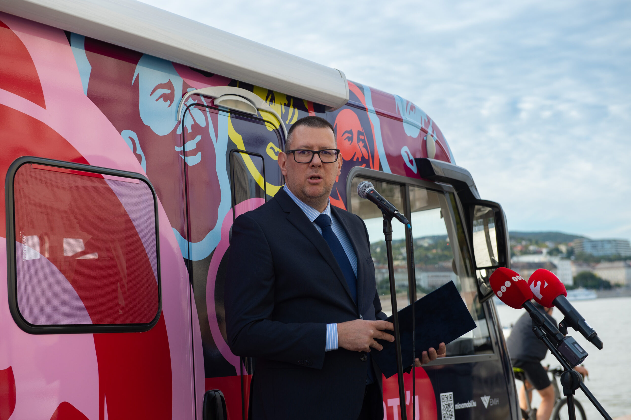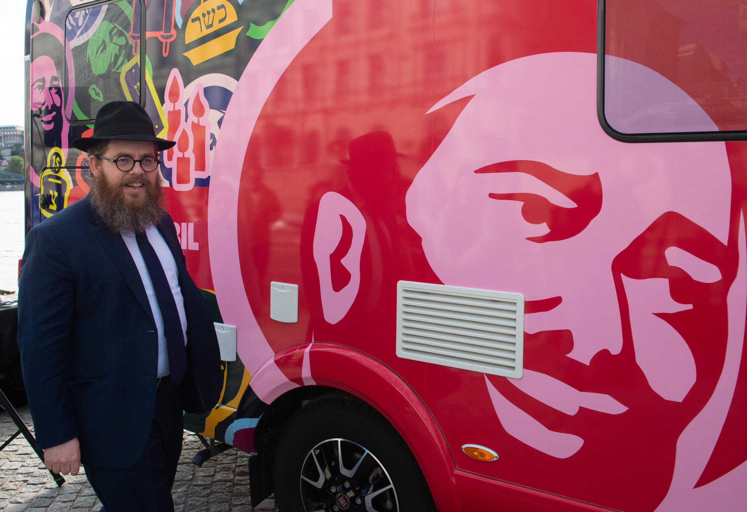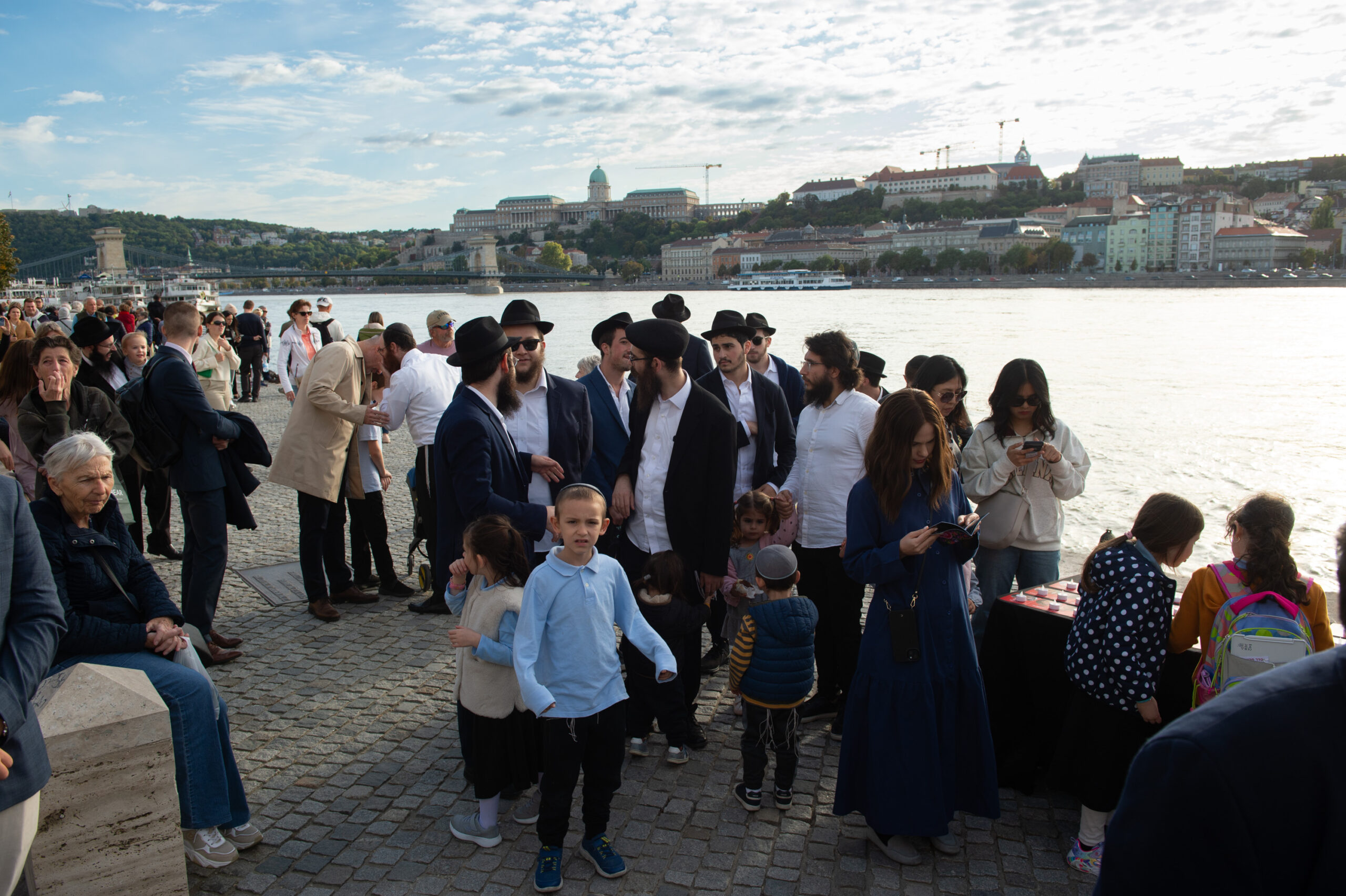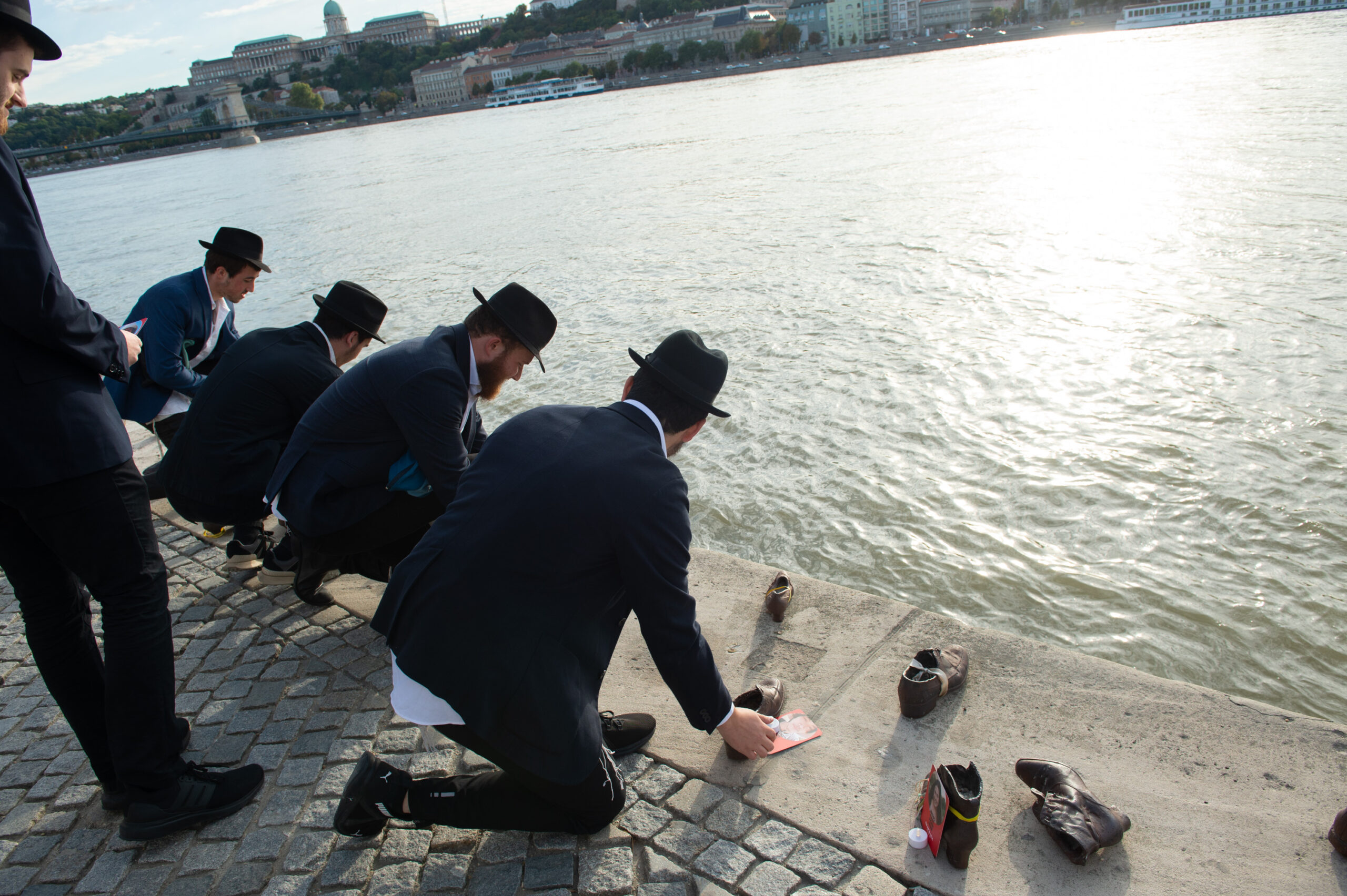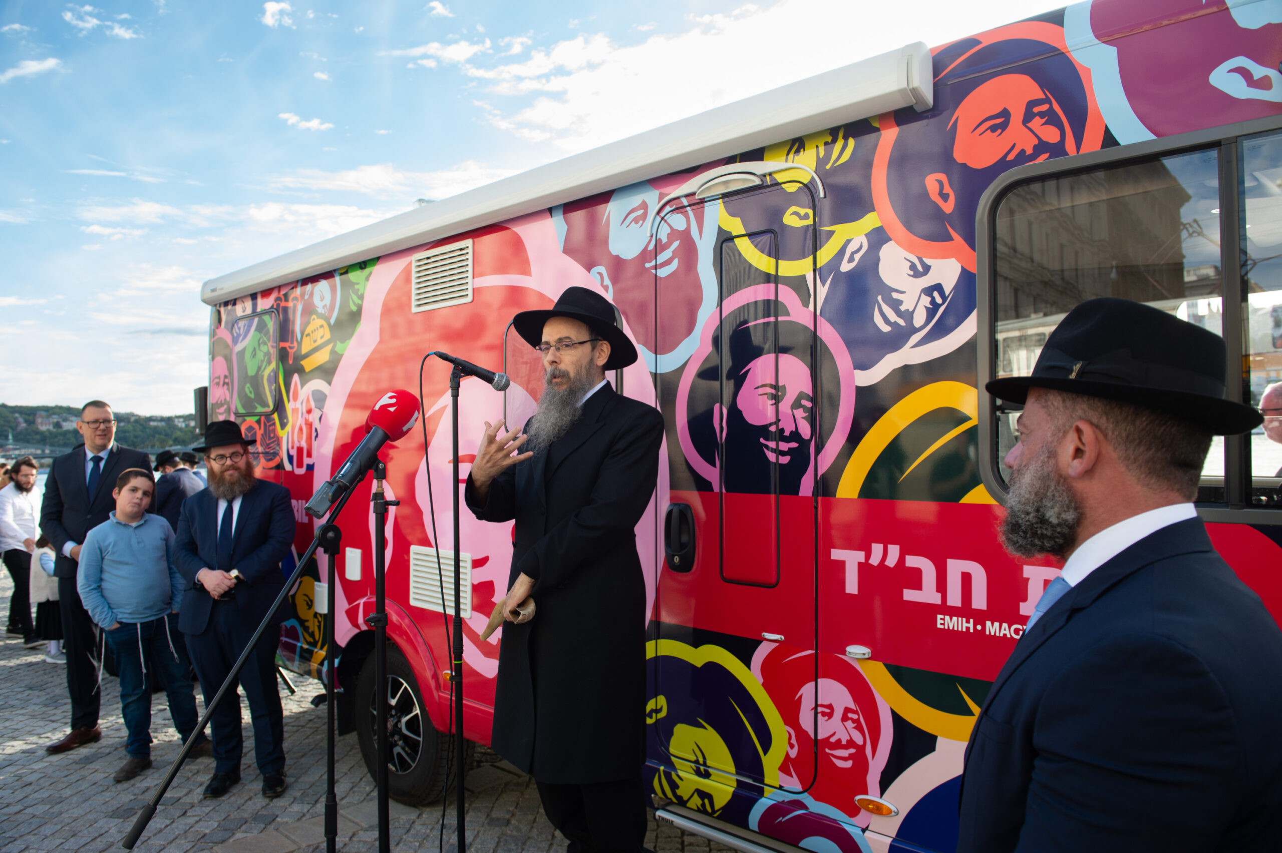 A szemfüles járókelők és turisták hétfőn már kora délután észrevehették, hogy valami készül a Duna-parton: egy feltűnően színes busz parkolt le a Cipők a Duna-parton emlékműnél, rajta Micva Mobil felirattal.
