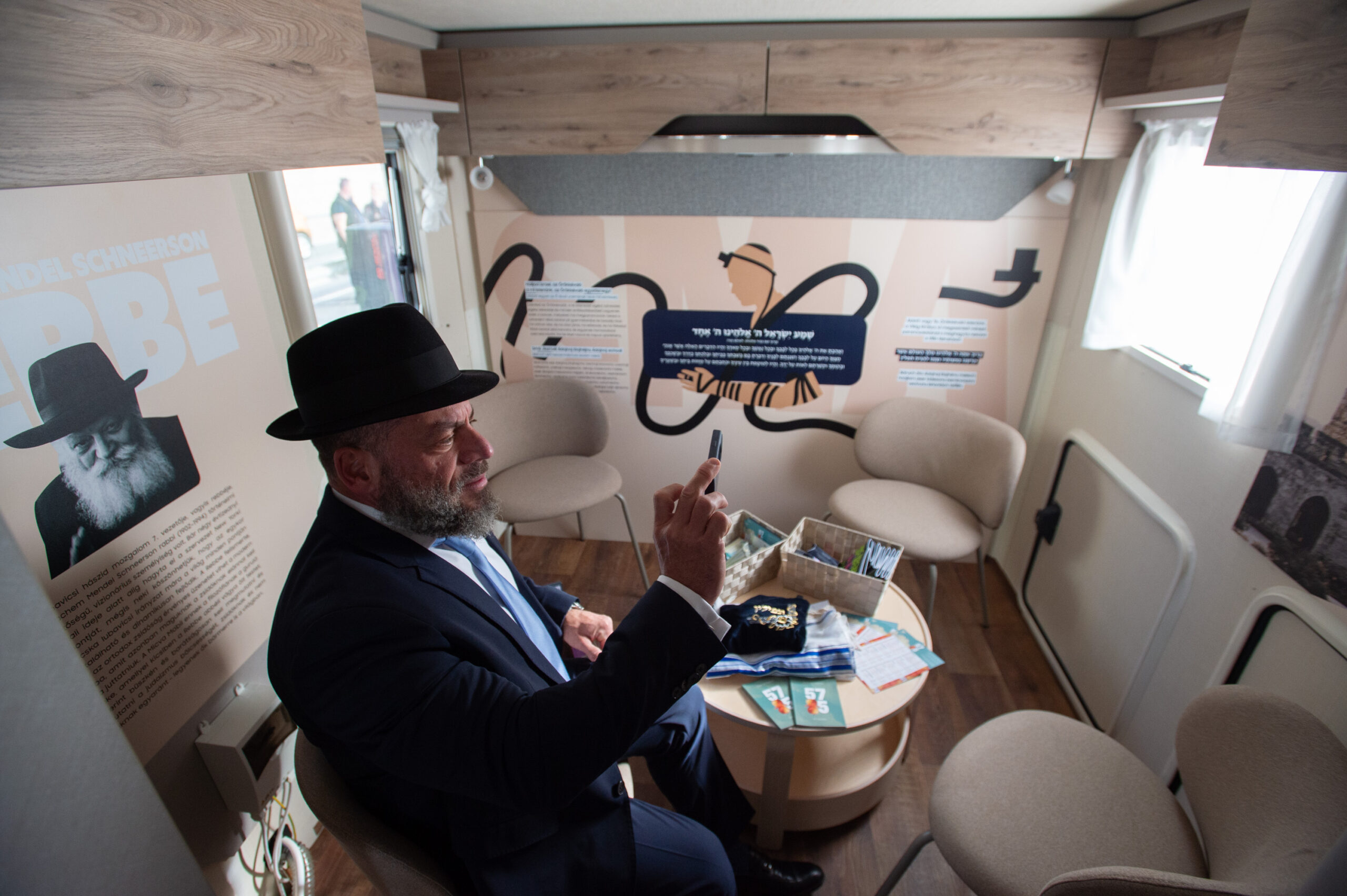A hivatalos rész után a zsido.com képviseletében elsőként jutottunk be a mobil belsejébe, ahol Oberlander Báruch rabbit kérdeztük a berendezésről és a teljesíthető micvákról. Megtudtuk, hogy minden olyan szükséges eszköz, tárgy, könyv megtalálható a Micva Mobilban, amely egy zsinagógában is rendelkezésre áll.