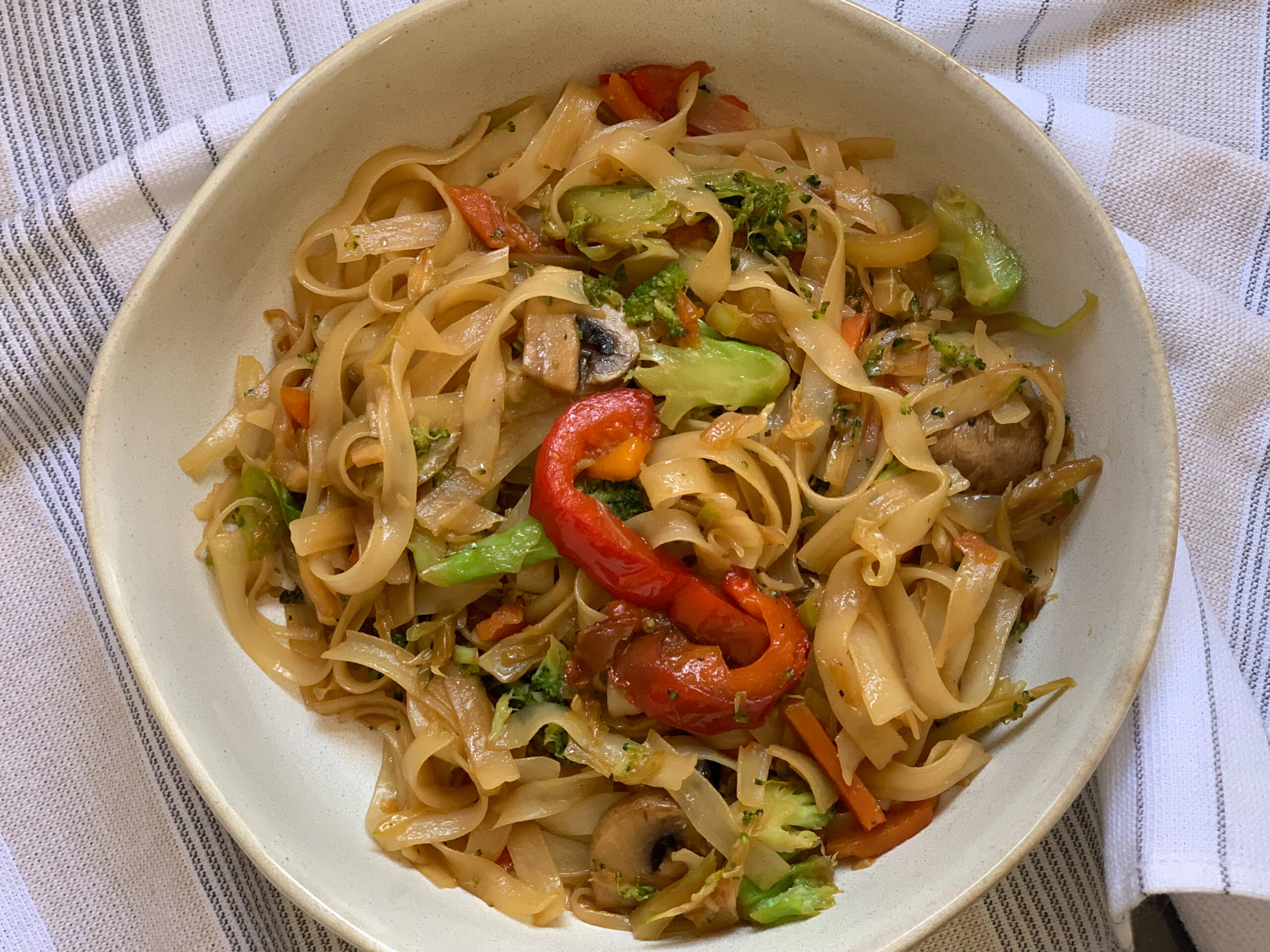A rizstészta könnyen, mindössze pár perc alatt elkészíthető, egészséges és igen laktató étel is. Az alábbi recept párve, azaz se nem húsos, se nem tejes és az összetevők gondos megválogatásával elkészíthető gluténmentesen is. Ha mégis húsosan enné, csirkével vagy hallal könnyű ebéd válik belőle, de akár tofut is adhat hozzá.