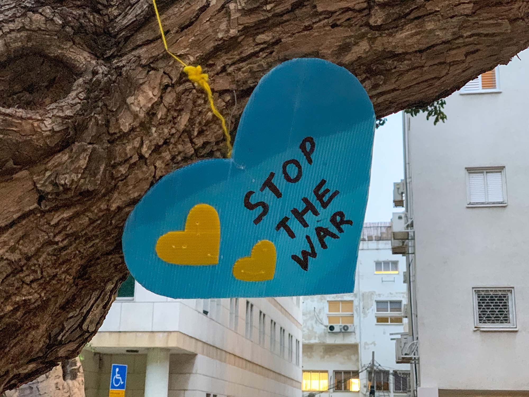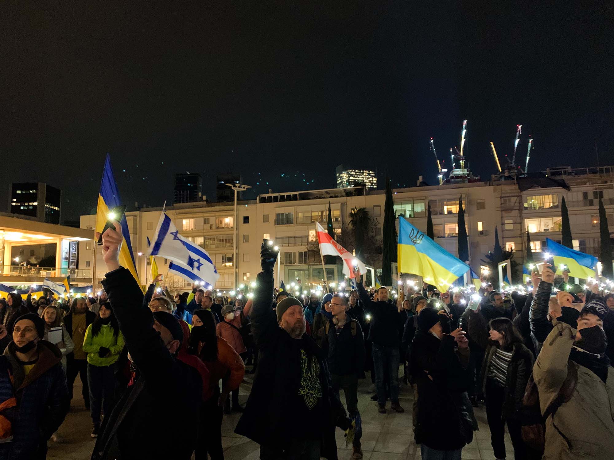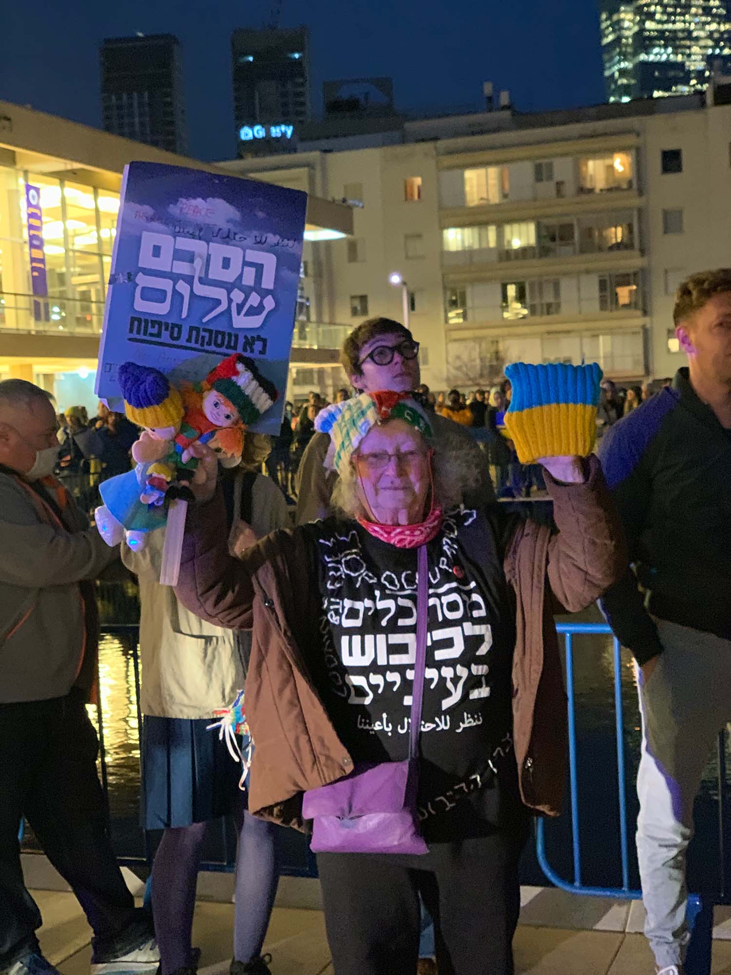 A téren több ezer ember gyűlt össze, volt, aki ukrán zászlót lobogtatott, aki táblával hirdette, hogy legyen vége a háborúnak és láttam olyat is, aki „Putin egy náci” feliratot festett papírjára. Olyan is akadt, aki purimi jelmezében érkezett, például a „Put in jail” feliratú mobilbörtönben. Az esemény kifejezetten békés volt, sok ukrán és orosz származású emberrel is találkoztam.