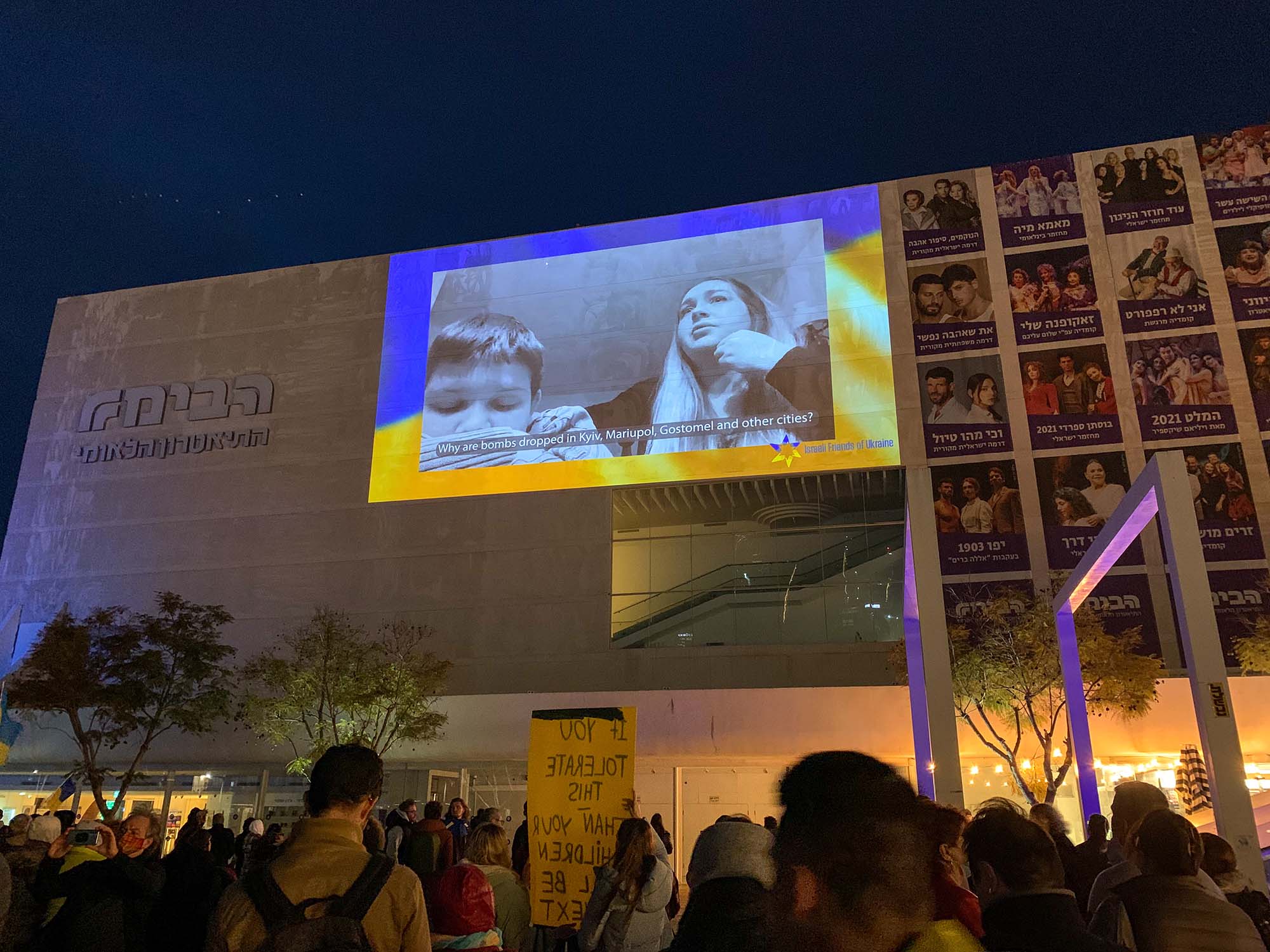 A videókonferencia után ukrán civilek videóüzeneteit lehetett megnézni, akik jelen körülményeikről beszéltek. Volt, aki arról mesélt, hogy a háború kezdete óta mindössze pár órát aludt. Egy anyuka pedig azt mesélte el, hogy nem tudja, hogyan magyarázza el a gyermekének mi történik országukban. A helyzet kilátástalan és nem tudják meddig lehet kitartani ebben az állapotban. Az eseményen az ukrán és az izraeli himnusz is felcsendült, amit a tömeg közösen énekelt el.