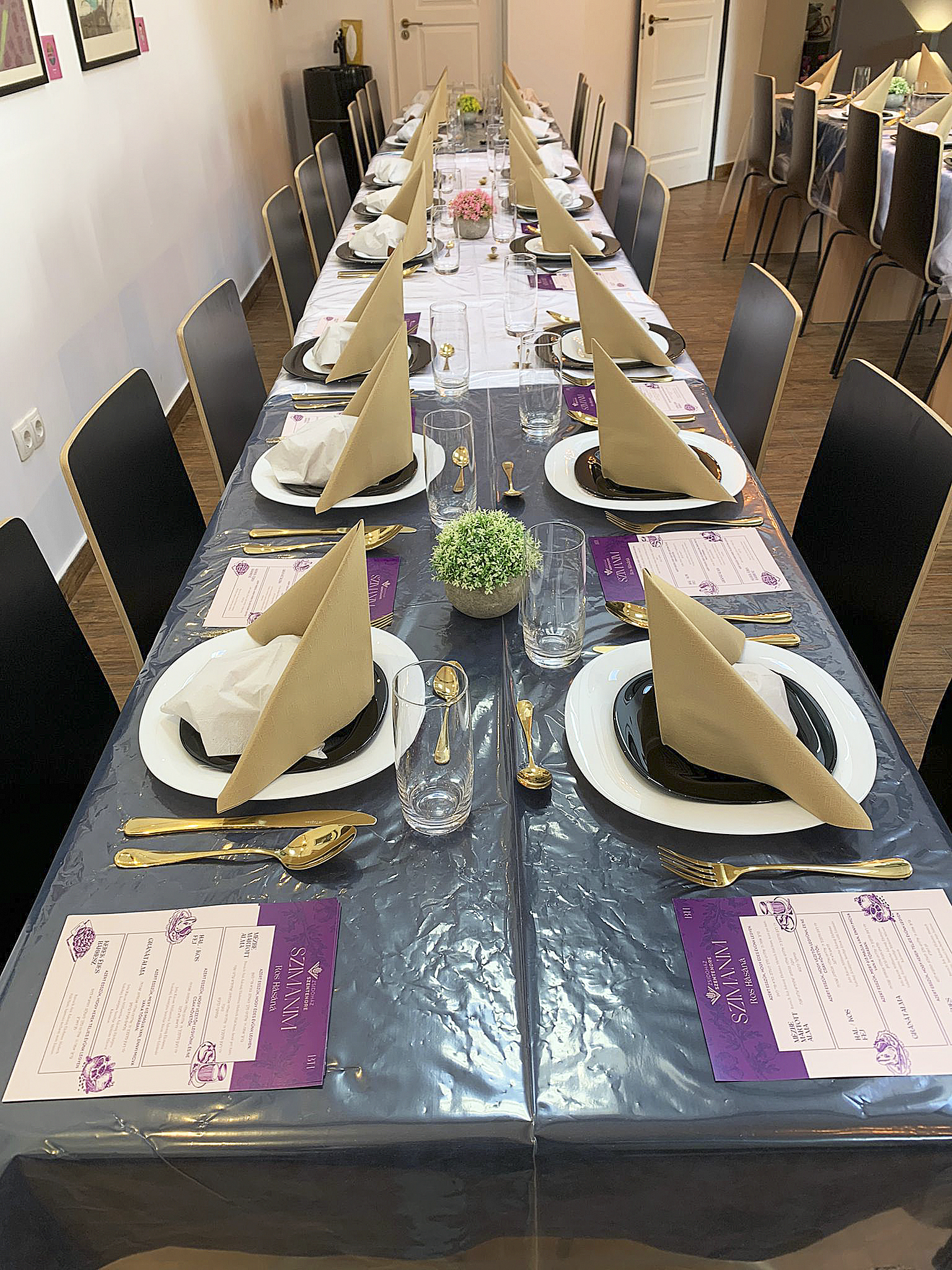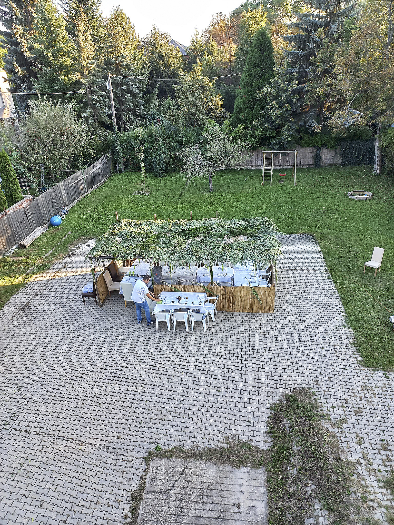 „Nálunk már hagyomány, hogy az ünnep második napján különleges menüvel készülünk a közösségnek a szukkában” – mesélte Myers Tzivia, a szentendrei Zsidóház rebbecenje – „Volt már kétszer szusi a szukkában, tavaly „mindenmentes” menü volt. Idén saksukát készítettünk és óriási sikere volt.” A saksuka, ez a tojással készült, lecsóra emlékeztető izraeli fogás igazi „kézműves” különlegesség volt, Myers Tzivia főzte az egész közösség számára.