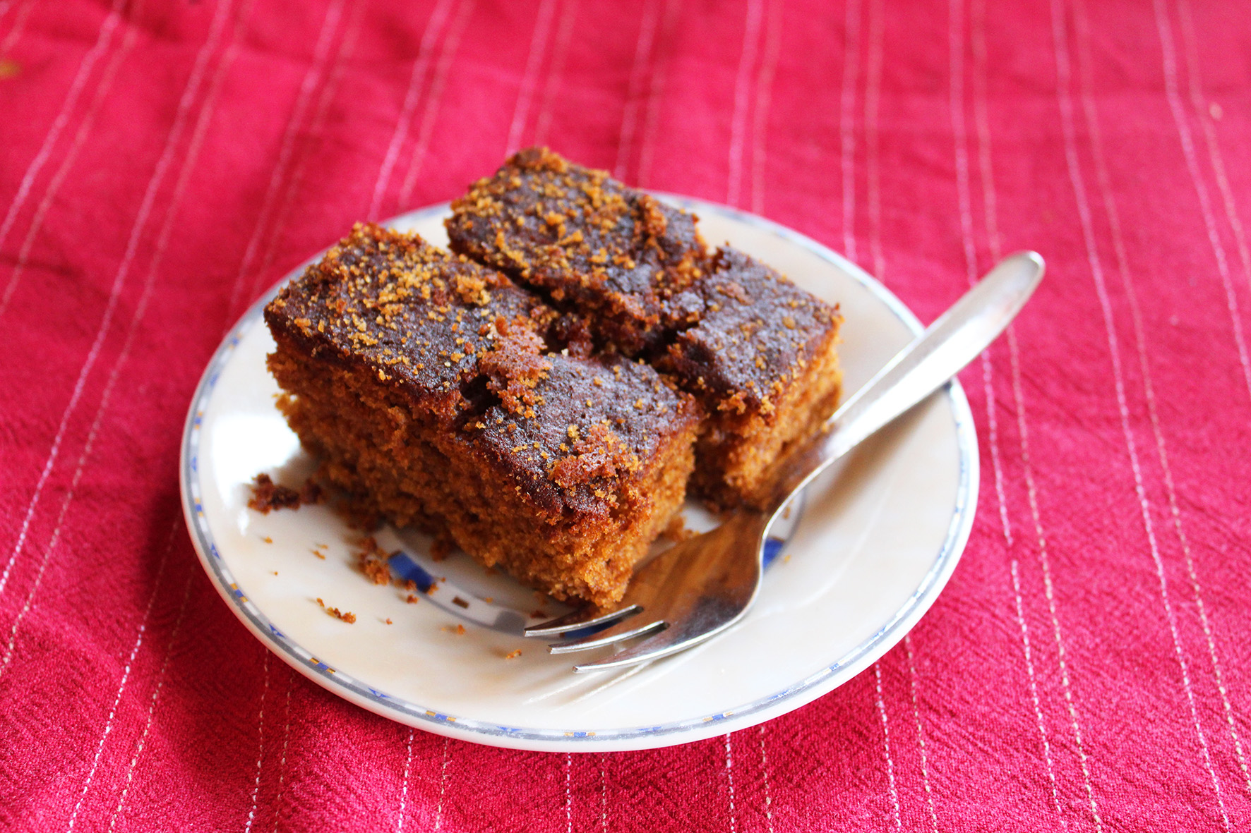 Hozzávalók: 3 tojás; 1 pohár méz; 1 pohár cukor; 1 pohár olaj; 1 pohár erős kávé; 3 pohár liszt; 1 csomag sütőpor; 1 kk. fahéj; ½ kk. szerecsendió