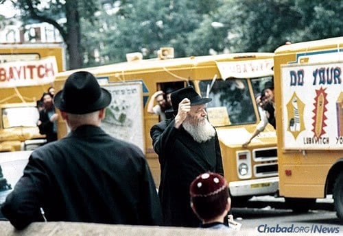 Ebben a miliőben jelent meg 1967 nyarán a Rebbe nagyszerű találmánya, a micva-tank. A kerekeken guruló zsinagógává alakított kisbuszok belsejében zsidó könyvek és egyéb rituális tárgyak: tfilin és szombati gyertyák várták az érdeklődőket. Az ötlet egyébként 1962-ben született meg, a távoli külvárosokban élőket kiszolgáló mobil könyvtárak nyomán. Simcha Piekarski rabbi elbeszélése szerint egy kávézóban osztotta meg vele az elképzelést egy helyi hászid üzletember, Aaron Klein. Ennek nyomán Piekarski átfestetett és belülről is átalakíttatott egy kisbuszt, hangszórókat szereltetett rá, és készen állt a micva-mobil. A Rebbe tanácsára helyet különítettek el a busz belsejében a tfilinrakáshoz. Az eredetileg Merkos Mobilkönyvtár nevet viselő kisbuszt fiatalok üzemeltették, akik tudták, hogyan kell az amerikaiakat megszólítani, és hogyan lehet a zsidóságot vonzóvá tenni a vallástól eltávolodott zsidók számára.
