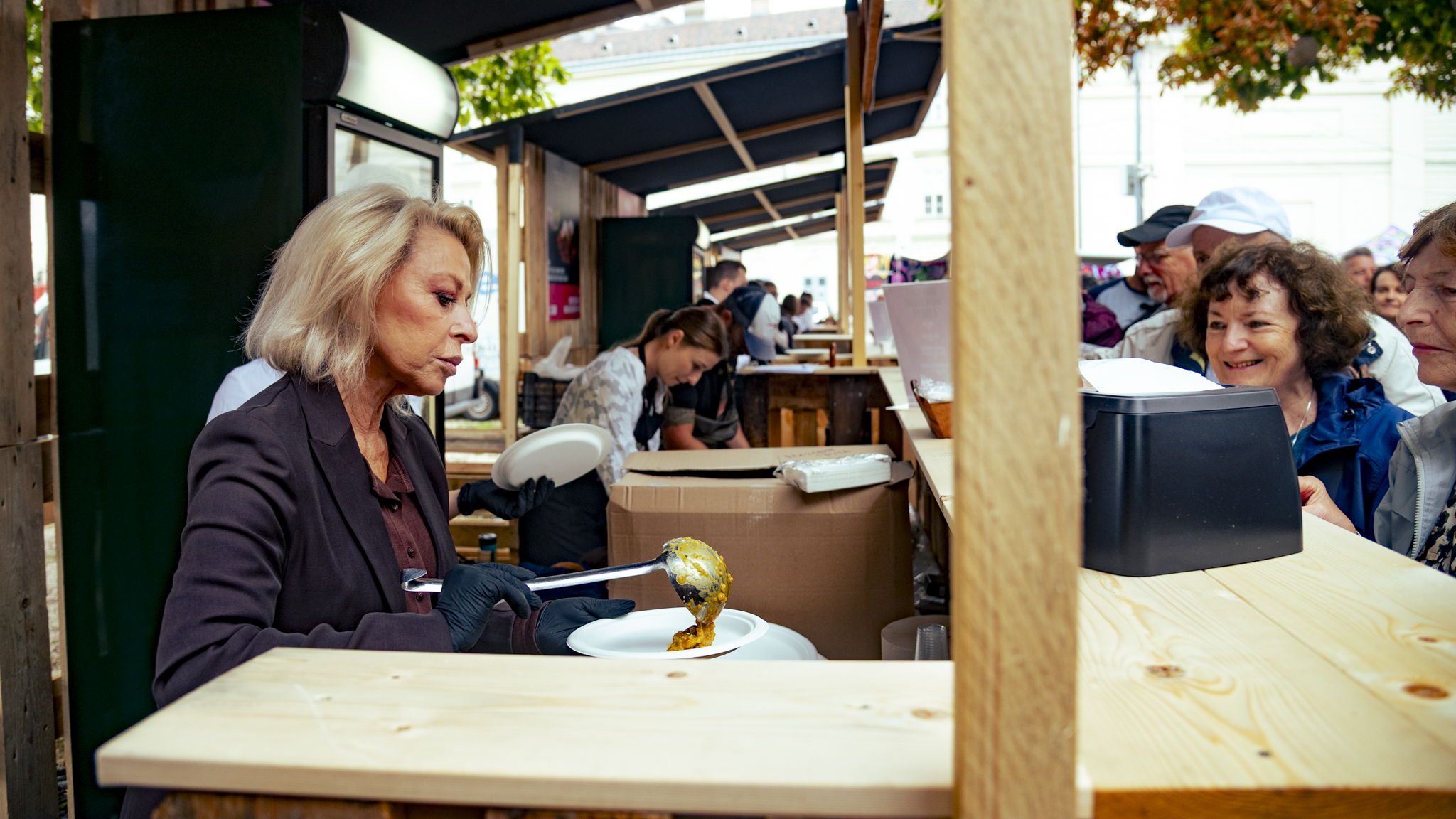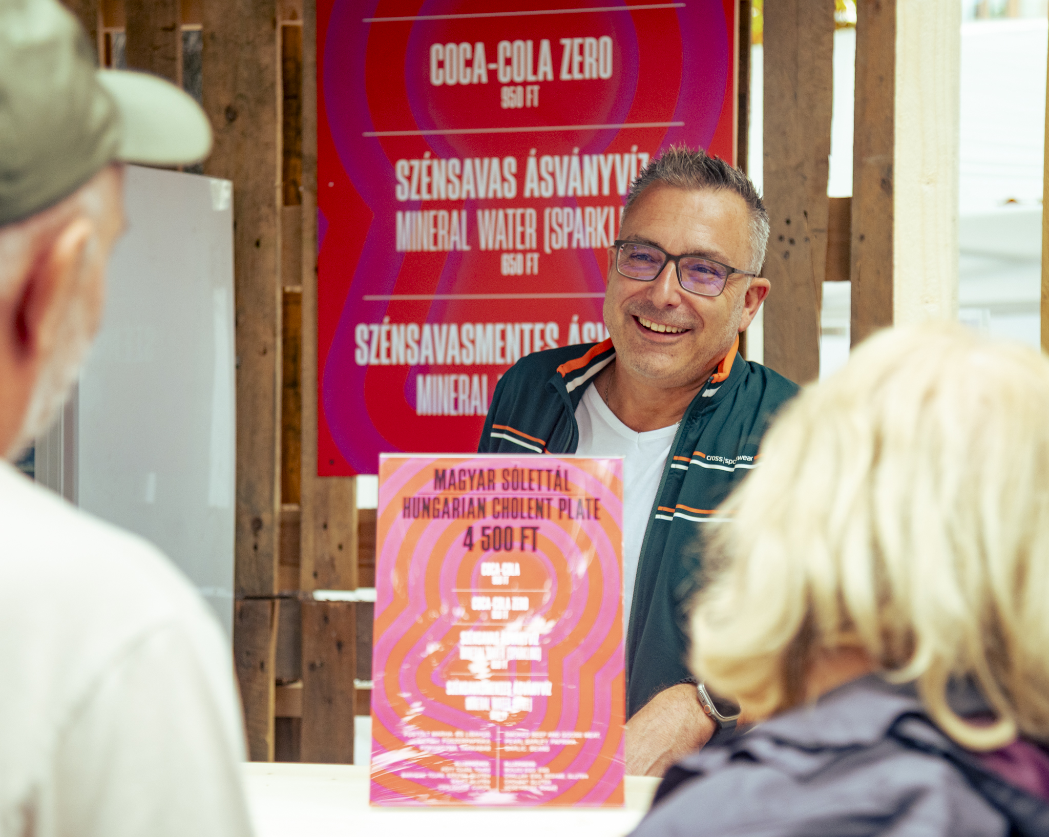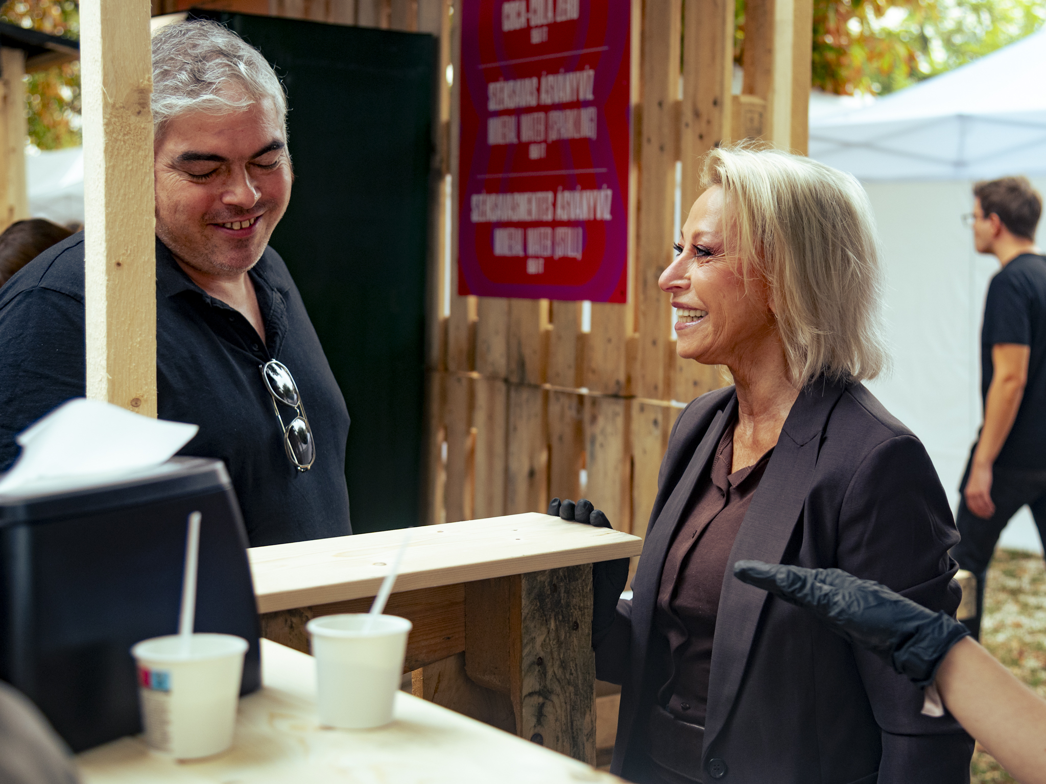 Fotókon Ungár Anikó és Sváby András, ahogy a 2025-ös Sóletfesztiválon segédkeznek, mint sólet-nagykövetek.